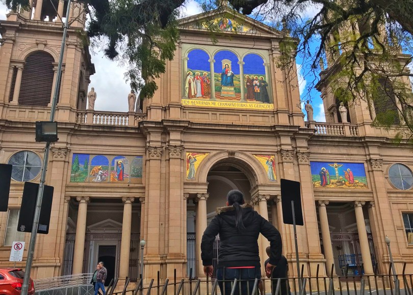 Começamos o tour conhecendo o que estava próximo ao hotel e a primeira parada foi na Catedral. A Igreja Matriz de Nossa Senhora da Madre de Deus de Porto Alegre ou simplesmente chamada de Catedral Metropolitana de Porto Alegre, fica situada na Praça da Matriz, no Centro Histórico da cidade.