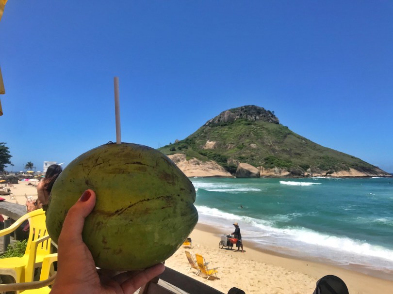 DICA IMPORTANTE: andando pelo calçadão da Praia da Macumba, tem várias barraquinhas vendendo água de côco, água mineral, sucos, etc. Passe em uma delas para se hidratar (foto abaixo).