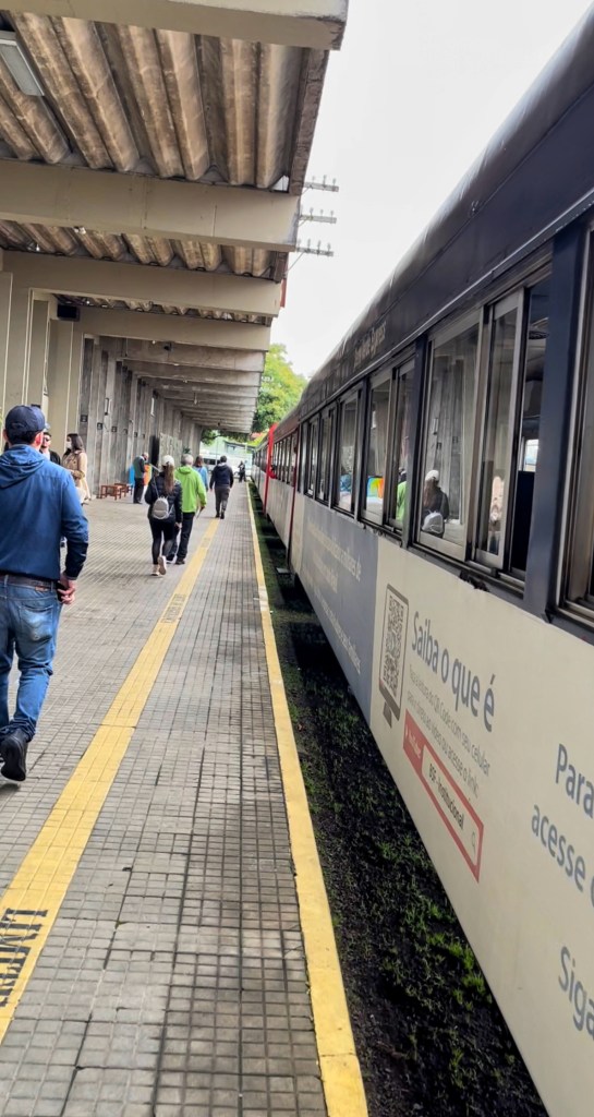 Entramos no trem 5 minutos antes da sua partida e percebi que não precisa chegar com a meia hora de antecedência que eles pedem não, mas é bom para fazer tudo com mais tranquilidade.