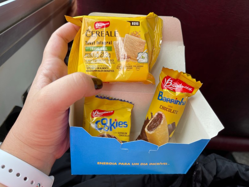Durante o passeio é servido um lanche (fotos abaixo) acompanhado de 1 refrigerante e 1 copinho de água mineral, que estão incluídos na passagem que pagamos, sem direito a repetir!
