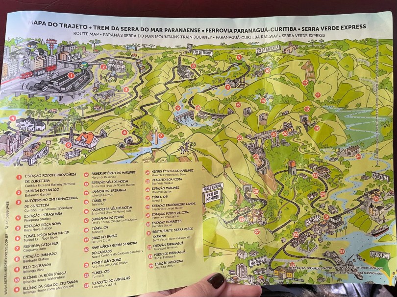 No início do passeio é entregue 1 mapa (foto acima) por assento, caso você esteja sozinho, terá que disputar com a pessoa que dividindo o assento com você para saber quem vai ficar com o mapa. Tipo, é só papel, super barato, porque não ofertar um mapa para cada passageiro? Afinal, todos pagamos igualmente a passagem, que não é barata.