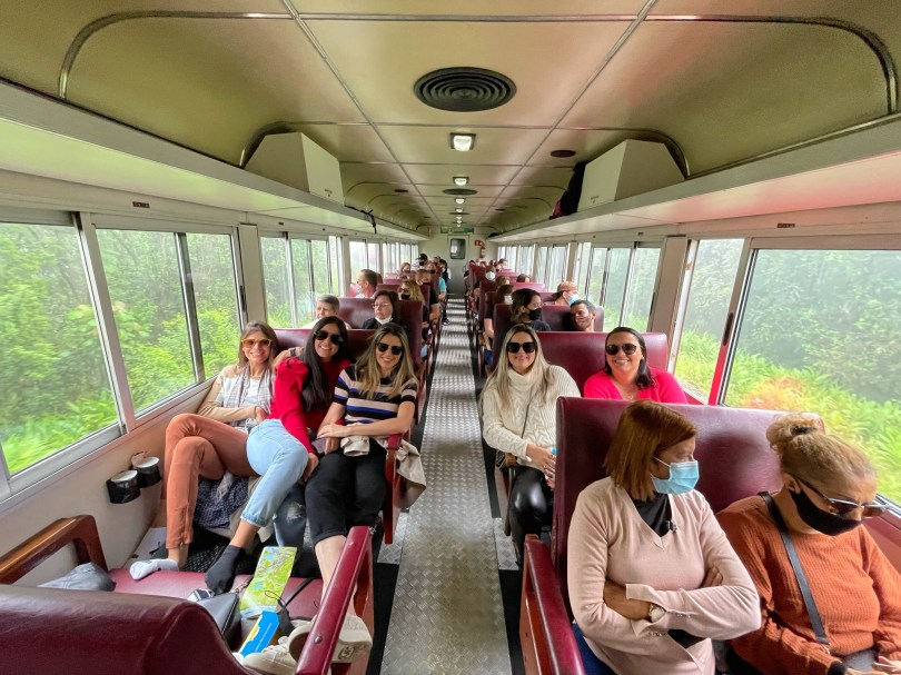 Finalmente, depois de tanto o guia ver as caras emburradas e insatisfeitas durante o percurso, em uma das paradas que o trem faz pelo caminho, falou assim: “vou ao banheiro e ninguém vai ficar olhando vocês”, tipo assim, podem tirar aquela foto escondida na janela do trem, que ninguém vai proibir vocês. Bizarro!