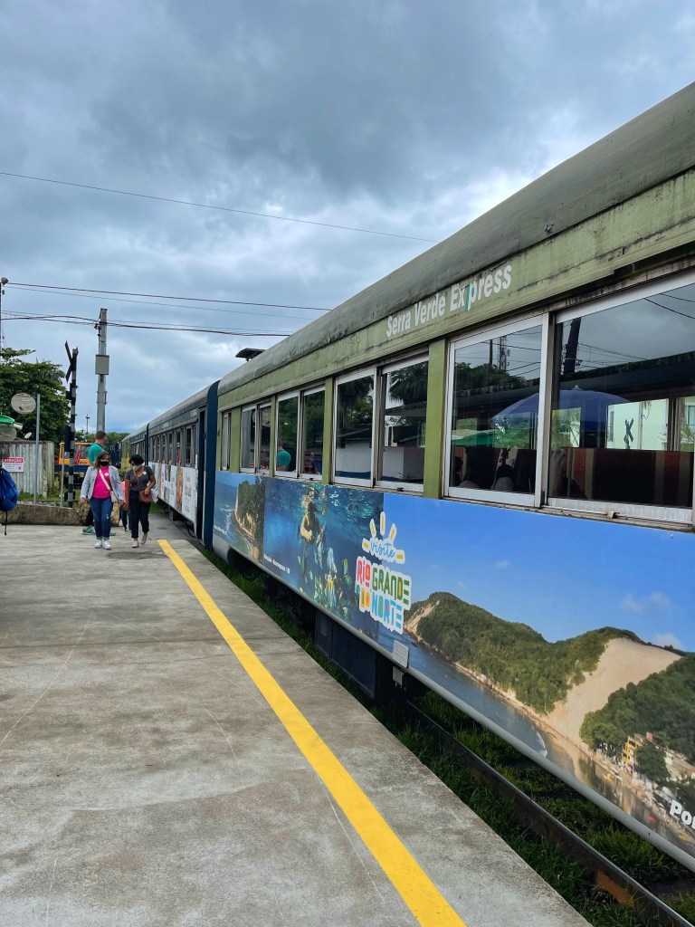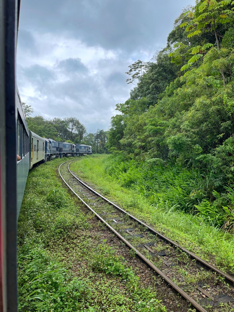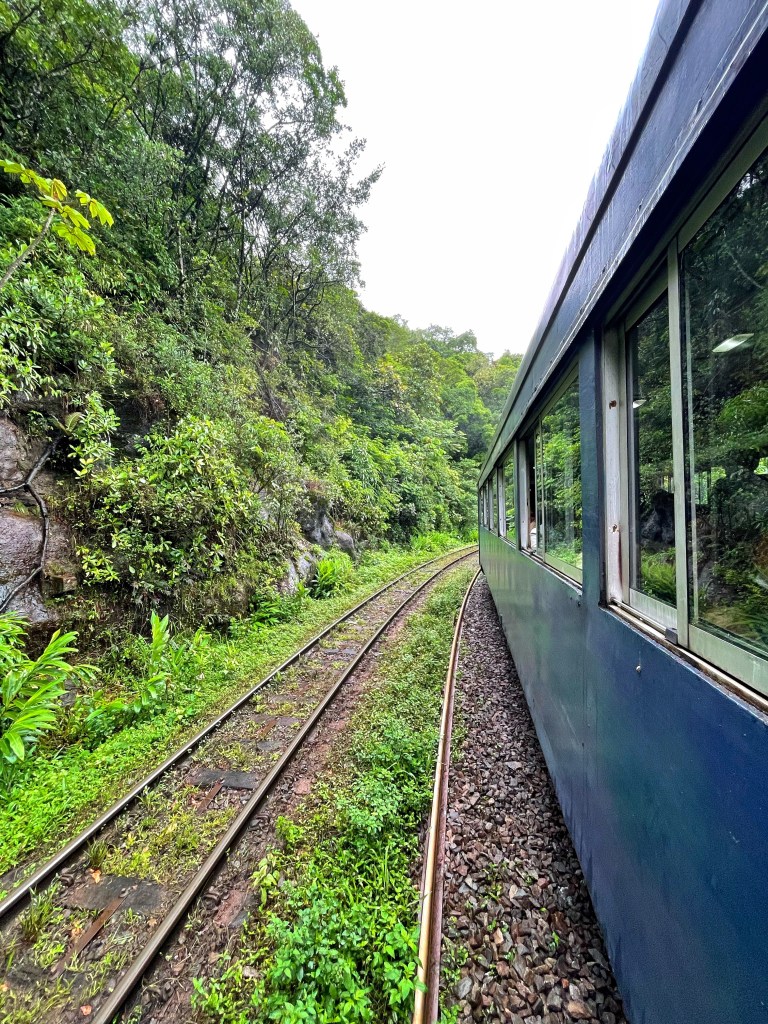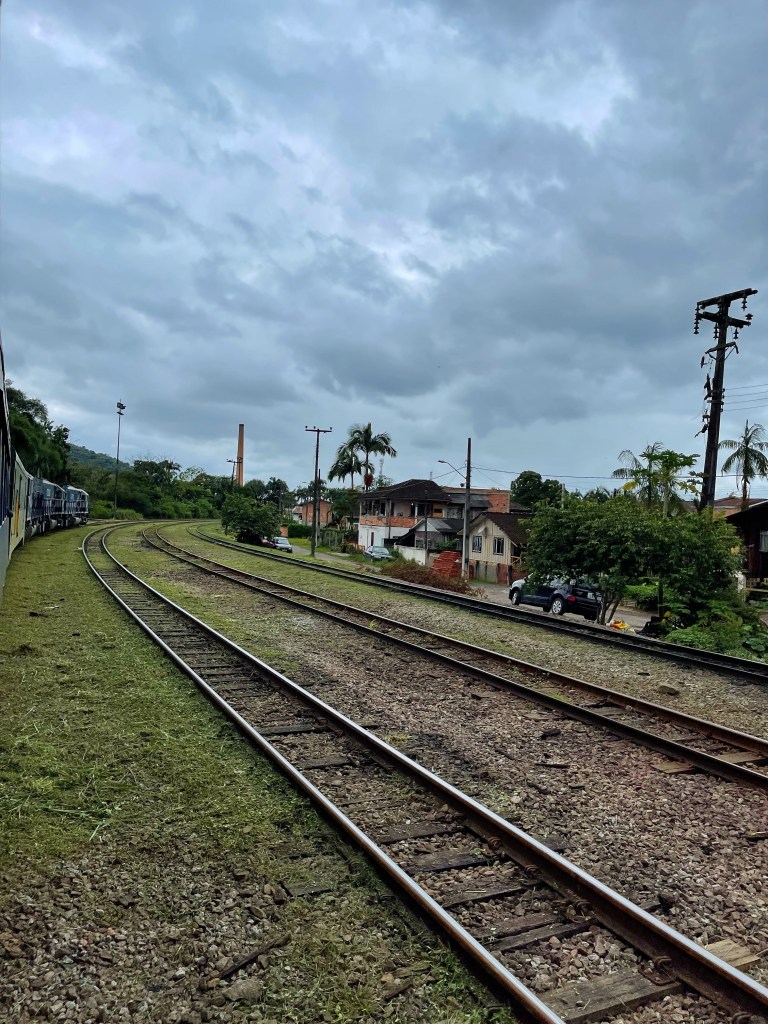 Uma pena o tempo ainda estar ruim e não termos visto toda a beleza que esse caminho proporciona, mas recomendo muito mais o trajeto por ela, do que de trem. Sem contar que pela Estrada da Graciosa o caminho é de cerca de 1 hora e bem menos cansativo. Se você estiver com crianças então, aí que não recomendo mesmo essa viagem de trem, porque se até um adulto fica entediado, imagina uma criança.