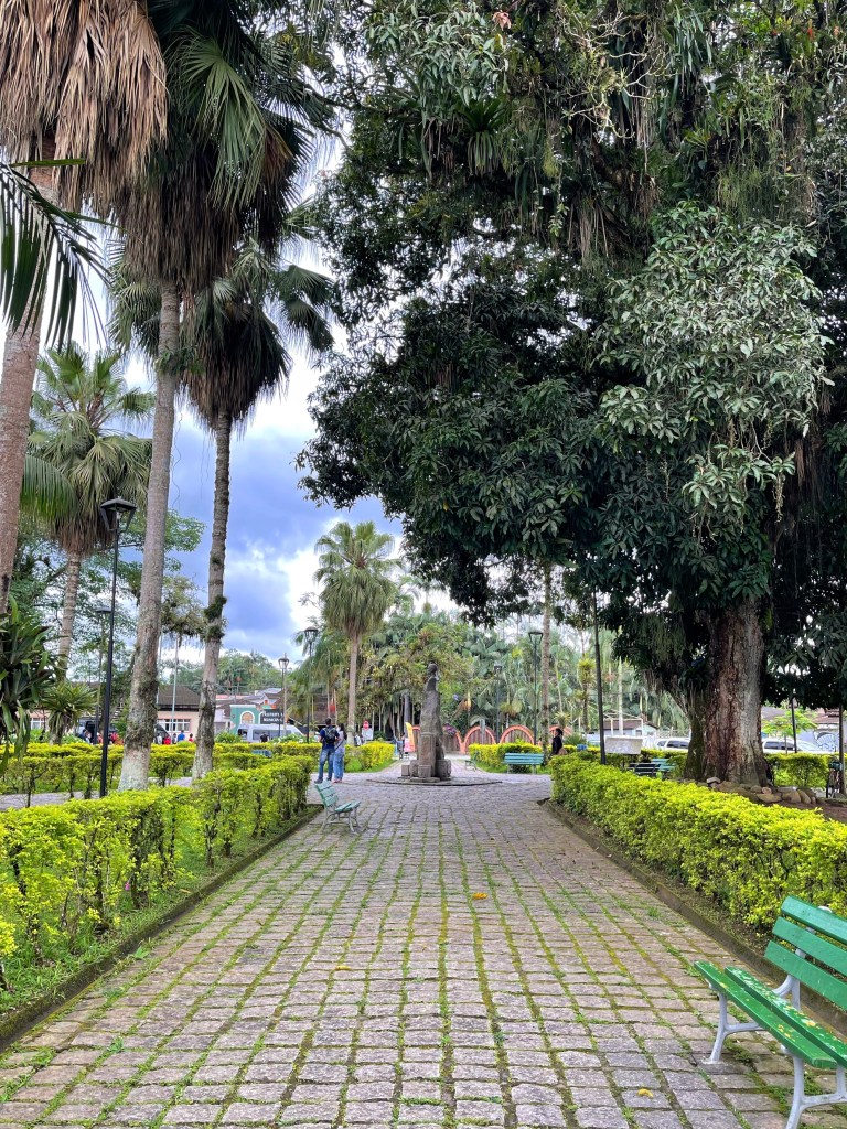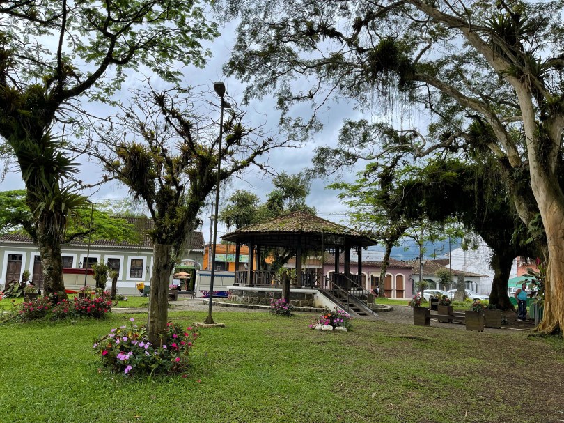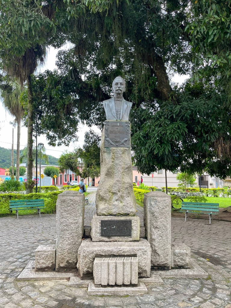 Saindo do centrinho, fomos tirar umas fotos na pracinha central de Morretes, que fica de frente para o rio e para a ponte metálica, cartão postal da cidade.