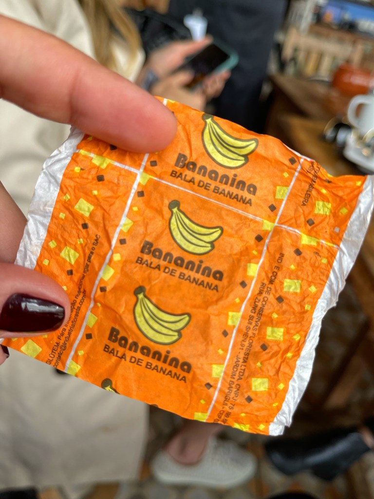 Antes de ir embora do restaurante, experimentamos a pinga e a balinha de banana, muito famosas na região. Confesso que a balinha é deliciosa, mas a pinga! PQP! hahaha