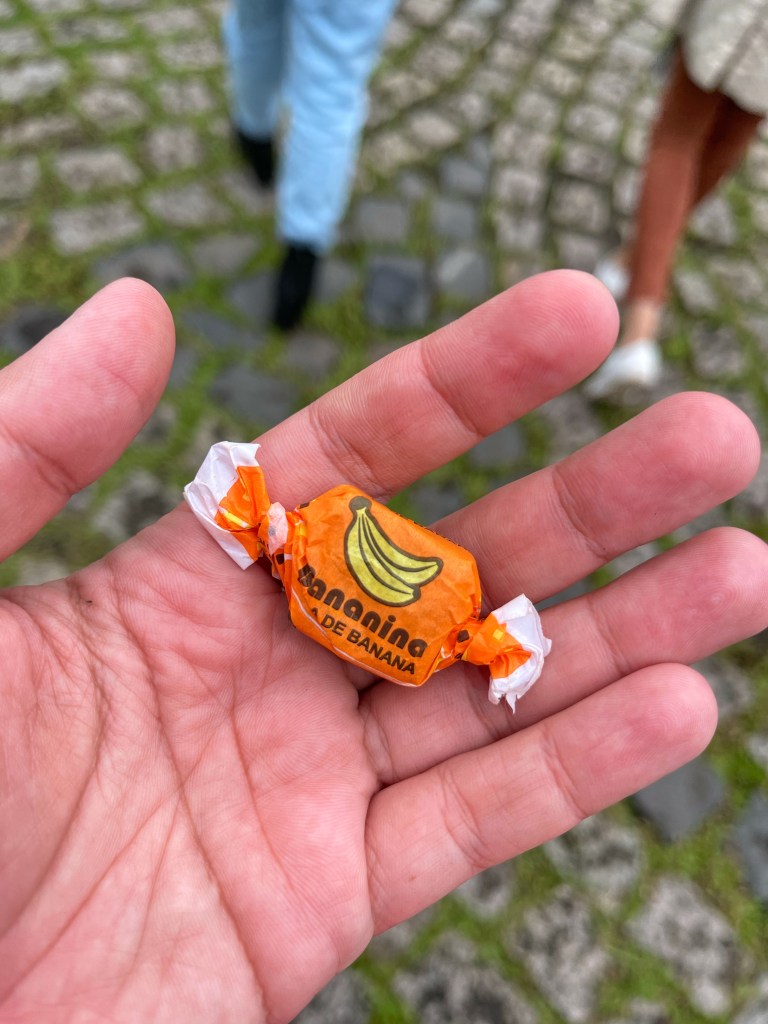 Em frente ao restaurante tem uma feirinha que vende da balinha e da pinga de banana e foi por ali que eu comprei meu imã de geladeira e trouxe um saco de balinha de banana para casa.