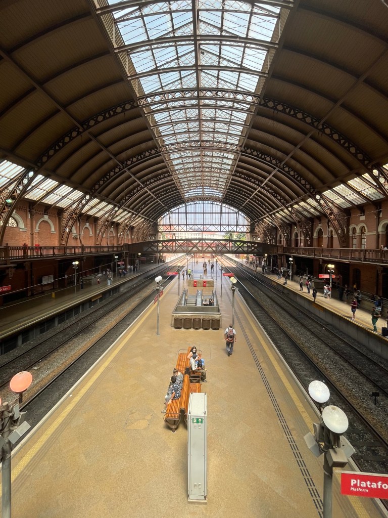 Comecei o dia na Estação da Luz, uma das principais estações ferroviárias de São Paulo, recebendo uma média de 450 mil passageiros todos os dias. Inaugurada em 1865, mas não na localização que se encontra atualmente e aos poucos foi se tornando obsoleta diante do crescente número de cargas e de passageiros, que tinham como destino a cidade de São Paulo. Hoje localização no Bom Retiro, teve sua construção iniciada em 1895 e finalizada em 1901. Abriga o Museu da Língua Portuguesa desde 2012.