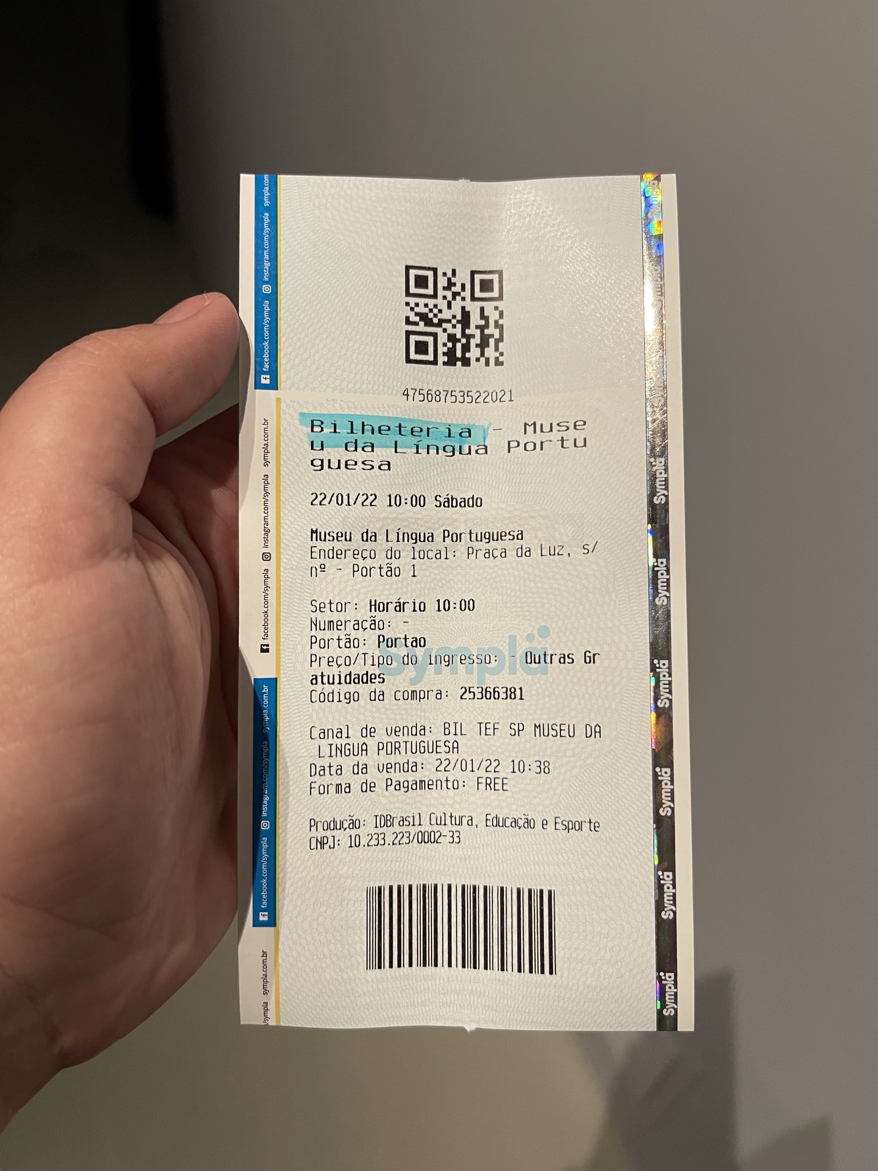Então, nem precisei sair de dentro da Estação da Luz para ir para o Museu. Por uma porta a esquerda, você acessa o Museu da Língua Portuguesa através do pátio de entrada. Mesmo aos sábados, com o acesso sendo gratuito, é necessário você retirar um ingresso na bilheteria e apresentar o certificado de vacinação na portaria. Eles aceitam fazer a conferência do certificado através do app Conecte SUS do Governo Federal.