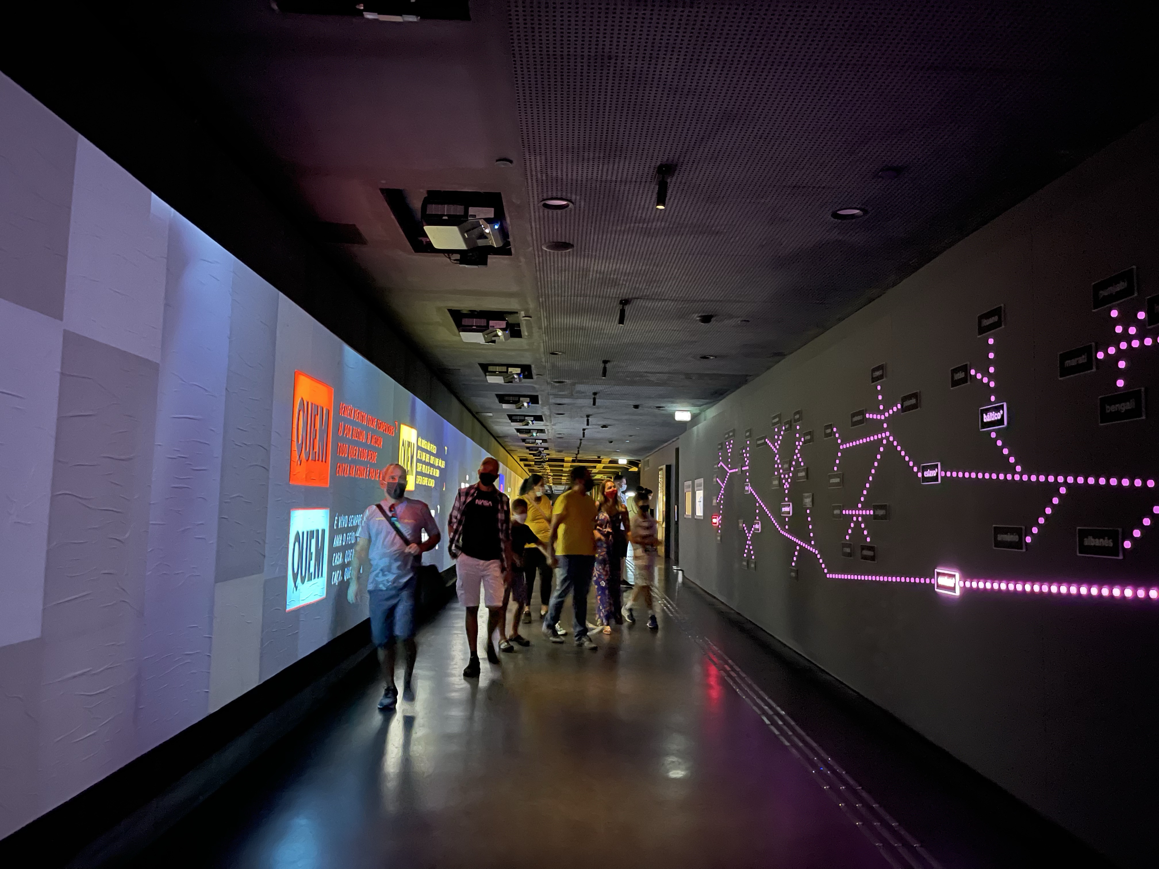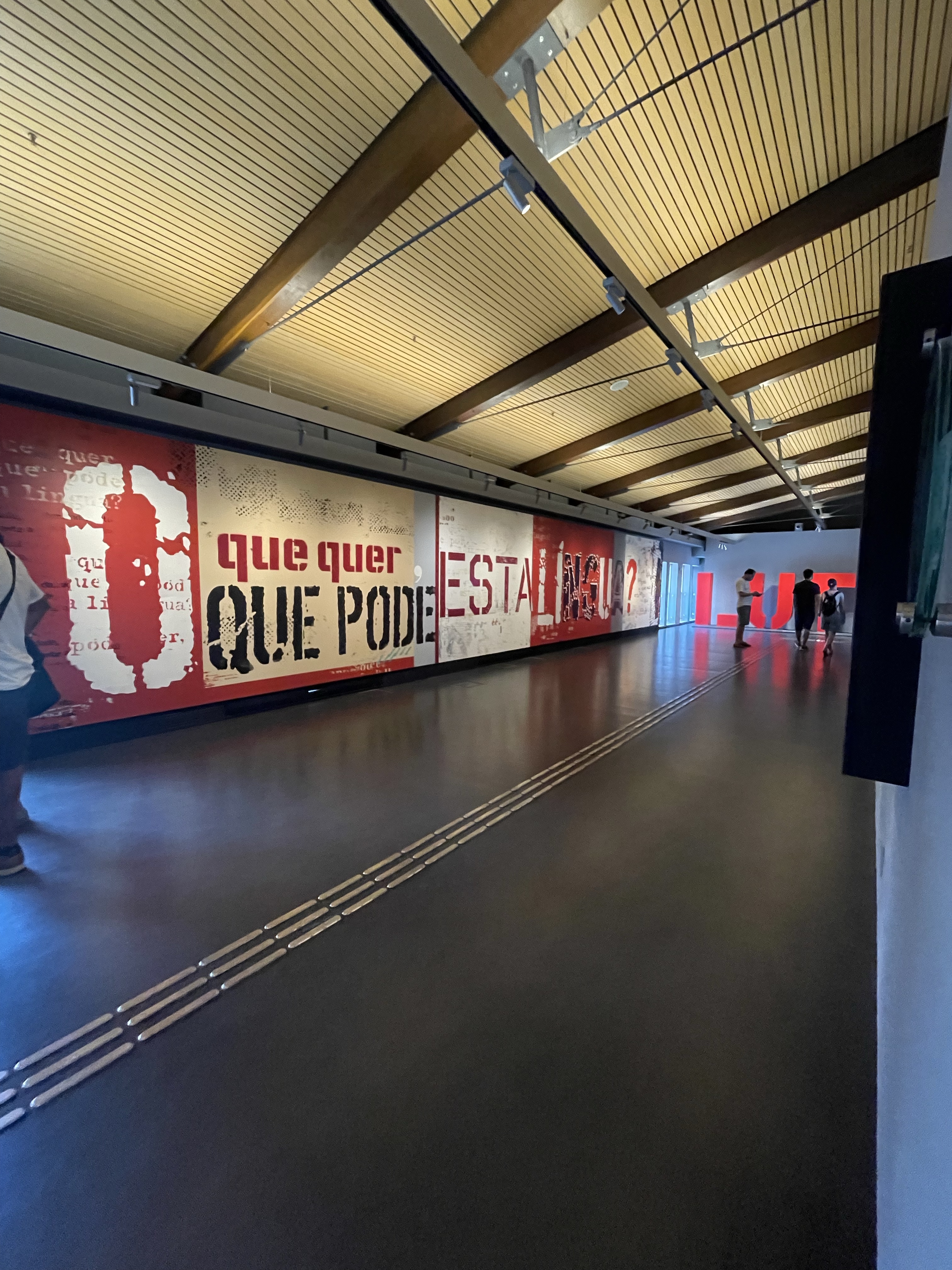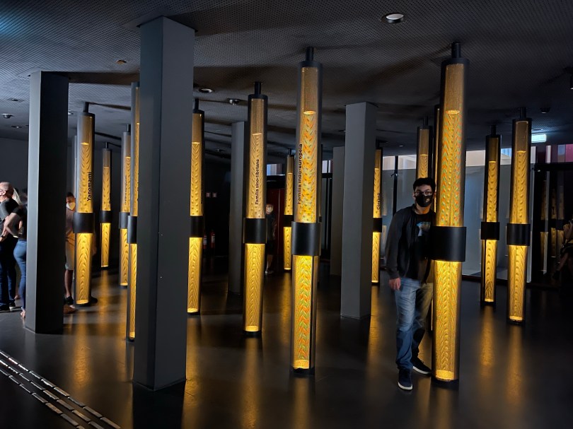 Dentro do Museu, temos 3 andares com exposições diferentes. No 1º andar, uma exposição temporária, no 2º andar a Exposição “Viagens da Língua” e no 3º andar a Exposição “Língua Viva”.