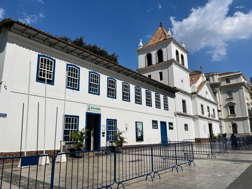Ao descer, aproveitamos que já estávamos por ali e fomos visitar o Pateo do Collegio que estava pertinho. Ele é uma obra apostólica da Companhia de Jesus e tem se tornado referência na preservação da memória histórica acerca das origens da cidade de São Paulo, na promoção da cultura e na afirmação da fé cristã em nossa sociedade, ao proporcionar um diálogo constante entre a história, a cultura inaciana (que é o modo de proceder e espiritualidade dos jesuítas, legado de seu fundador) e a cultura atual por meio da realização de eventos gratuitos ou de baixo custo.