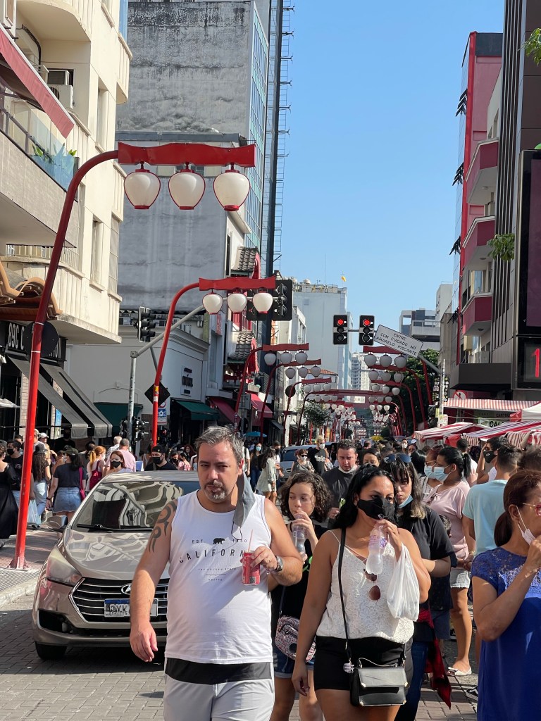 Chegamos ao Bairro da Liberdade e eu fiquei impressionada o quanto ele cresceu desde quando eu o conheci, cerca de 6 anos atrás. As ruas completamente lotadas, cheia de barraquinhas e uma infinidade de lojas. Estava bem diferente, mas gostei desse antes e depois.