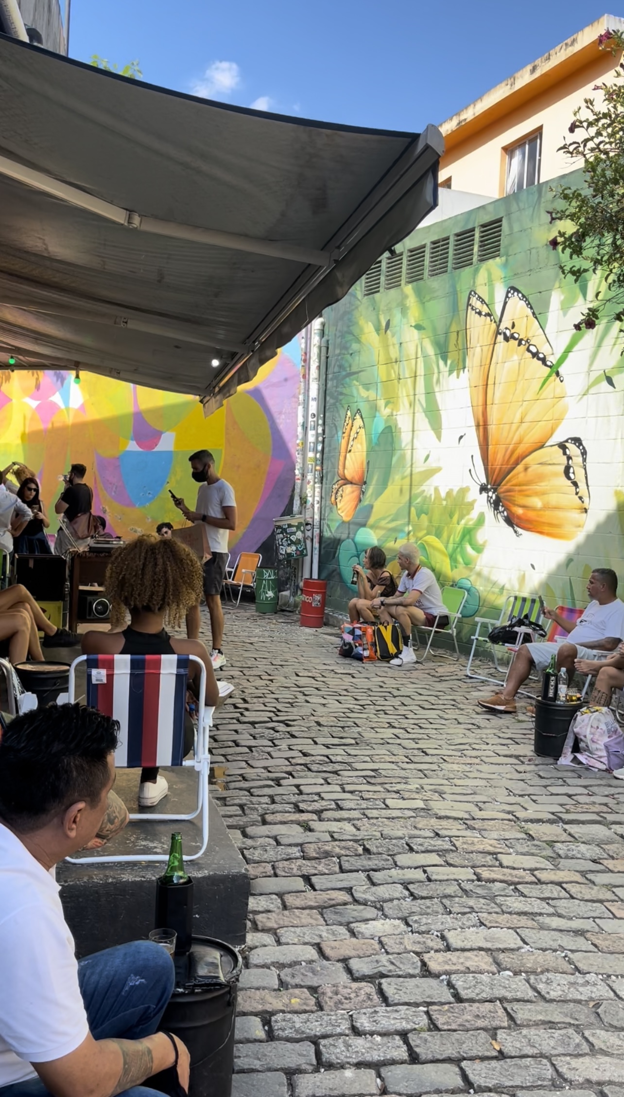 Um dos barzinhos tocava vitrola e tinha cadeiras de praia, um lugarzinho super cool para passar o dia.