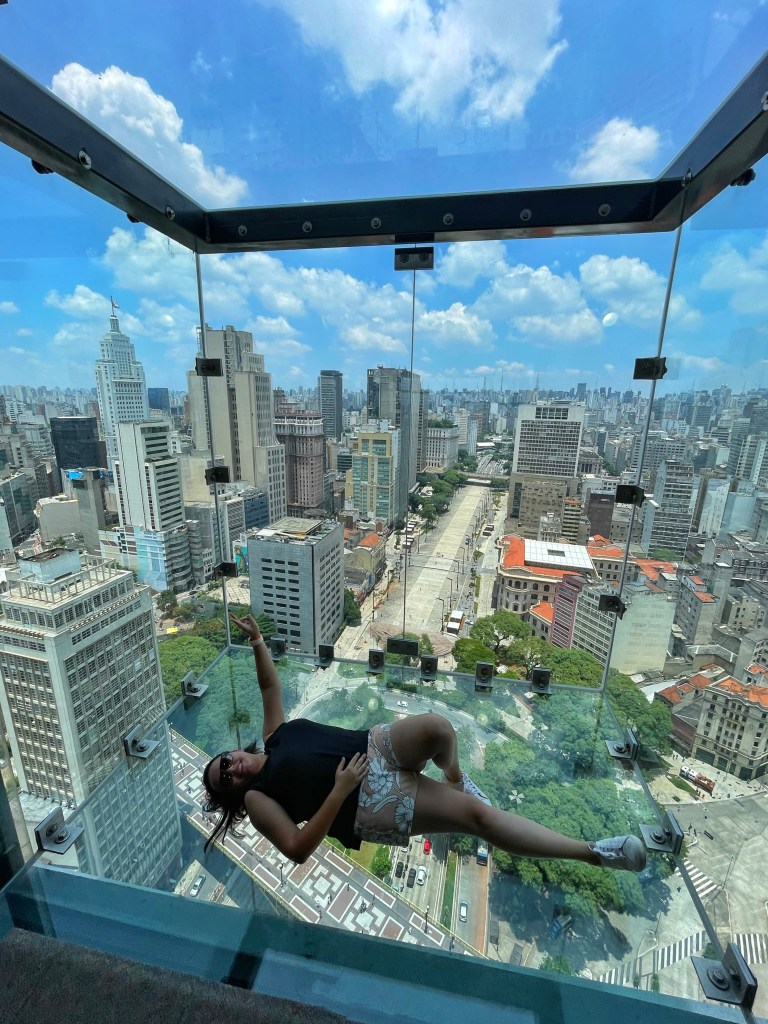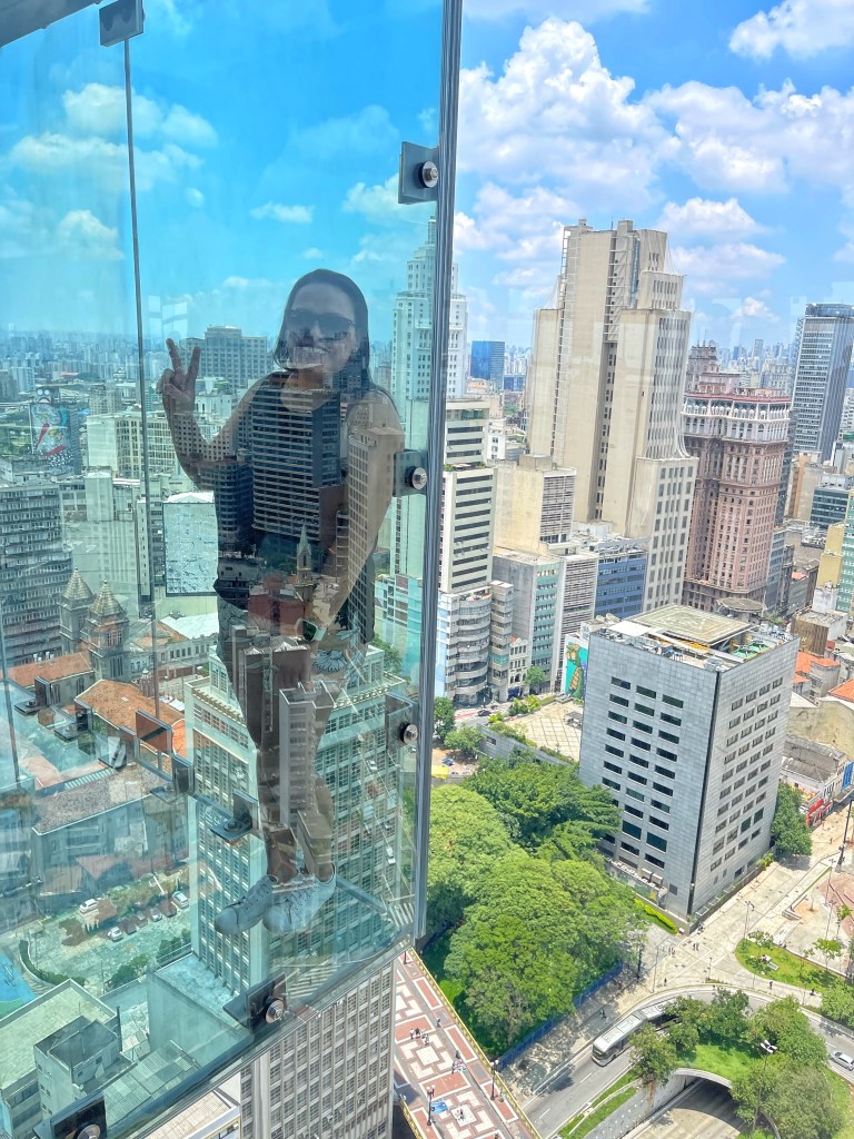 Do Parque Ibirapuera, segui para o Sampa Sky, o mais novo mirante de São Paulo, que fica situado no centro da cidade. Os valores são: R$80 (inteira) | R$50 + 1 kg de alimento (meia entrada social) | R$40 (meia entrada). Achei caro, uma vez que a permanência é de apenas 1 minuto e meio em cada caixa de vidro. No local, existem outros pontos de fotos e uma cafeteria. Compre aqui o seu ingresso!
