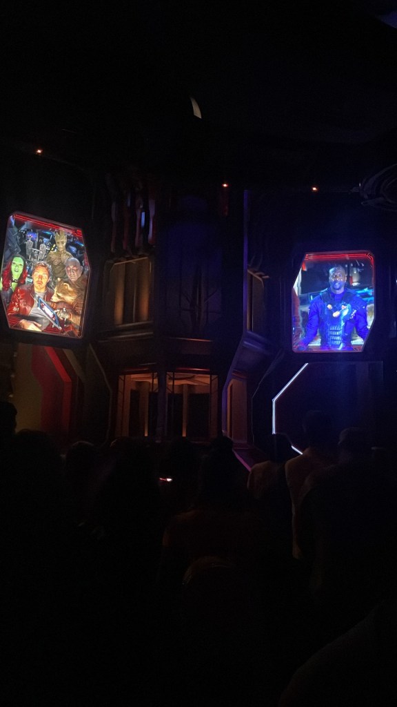 Fiquei por alí quase 1 hora assistindo, até dar a hora de ir no brinquedo mais disputado do EPCOT, o Guardians of the Galaxy: Cosmic Rewind, montanha russa completamente indoor e primeira desse parque, além de ser a primeira atração de Marvel nos parques da Walt Disney World. Meu ticket estava com horário marcado para as 19:13 e pontualmente entrei no brinquedo. Surreal como tudo funciona na Disney. Quase morri do coração, mas superei o a adrenalina e emoção. haha