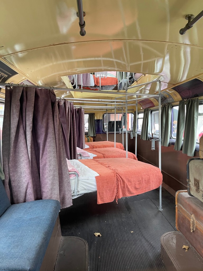 Saindo da estação, você já dei de cara com o The Knight Bus, o ônibus que aparece sempre que uma bruxa ou um bruxo estica o braço com a varinha para fora do meio-fio. Caminhei até a parte de trás dele e vi como ele é por dentro. Igualzinho ao filme!