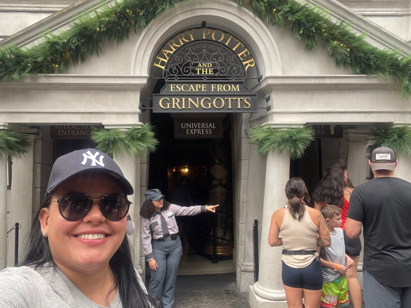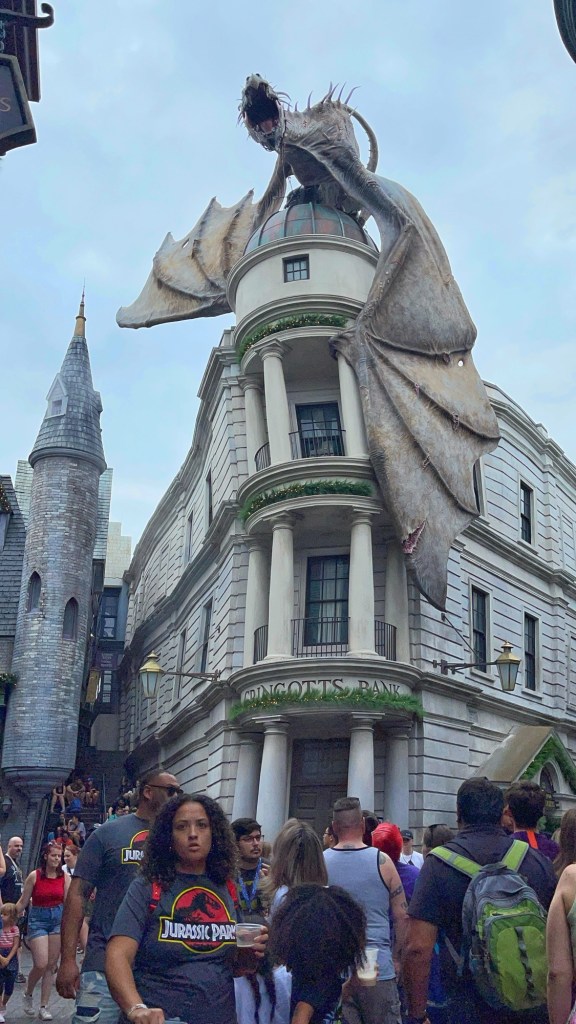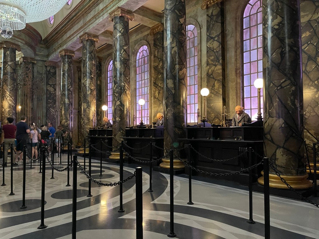 Em seguida, fui conhecer o Gringotts Bank, o banco dos bruxos. Sério! Não deixem de conhecer, a perfeição de detalhes é incrível. Fiquei menos de 30 minutos na fila para entrar e valeu demais!