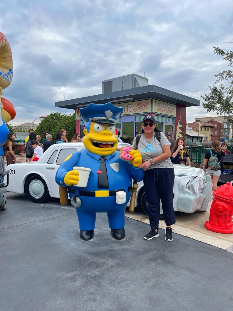 Saindo do Beco Diagonal, atravessei a ponte e fui para o The Simpsons Ride – Krustyland, na área de The Simpsons, um dos meus desenhos favoritos. Passeando por Springfield, a gente passa pela Duff Beer – a cerveja preferida do Homer Simpson, Taverna do Moe’s e ainda encontra o polêmico Chefe Wiggum comendo um donuts. haha