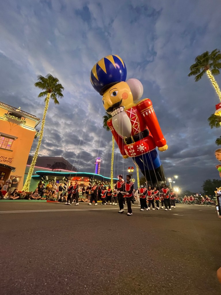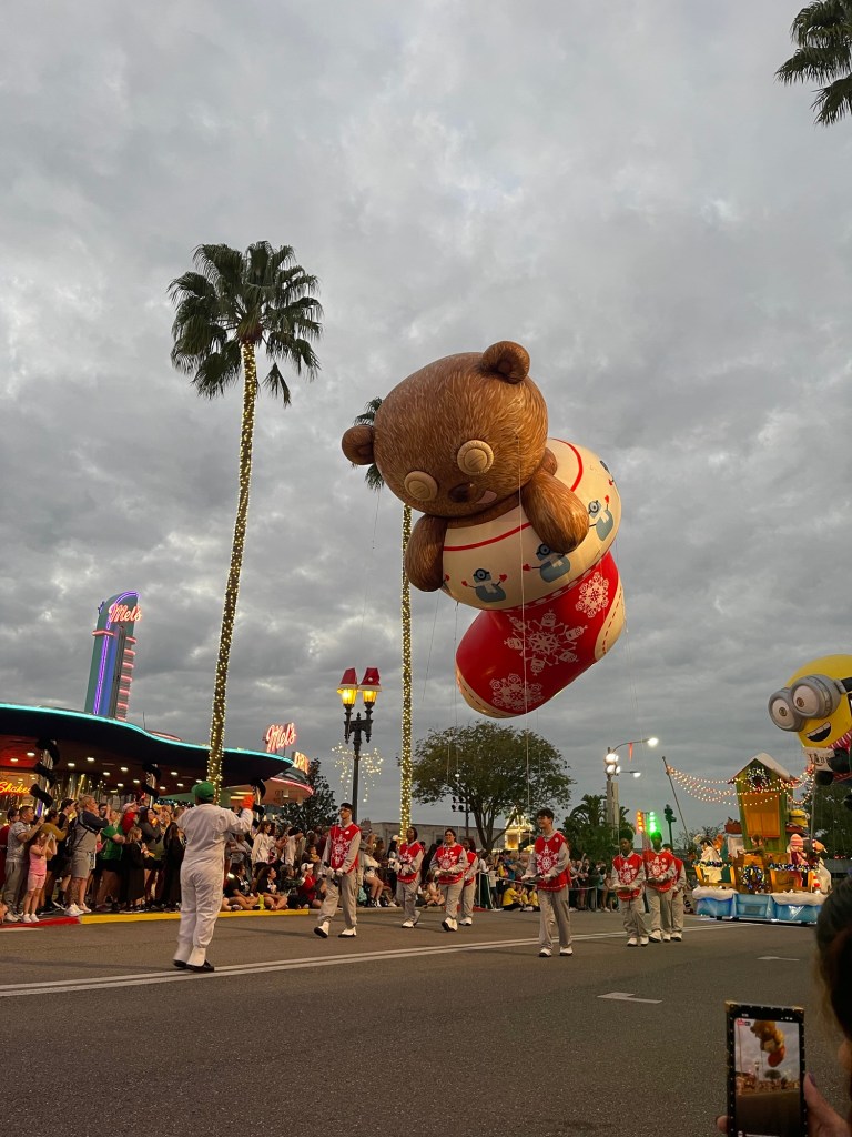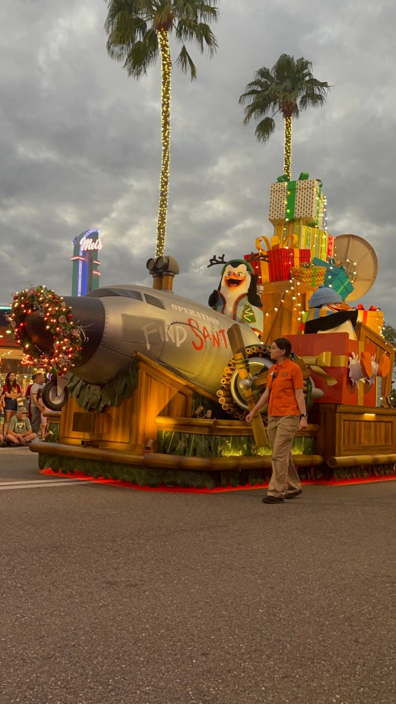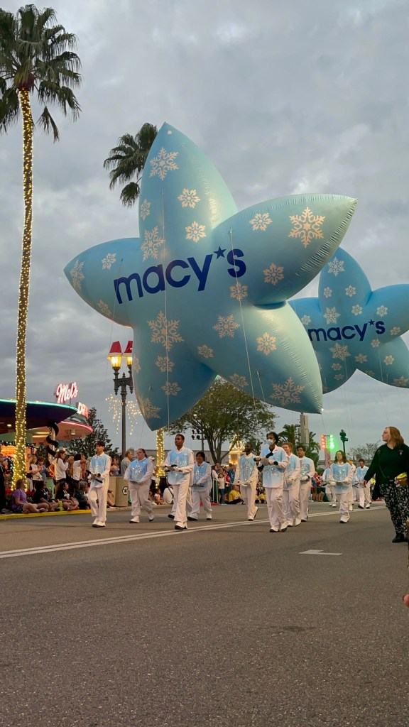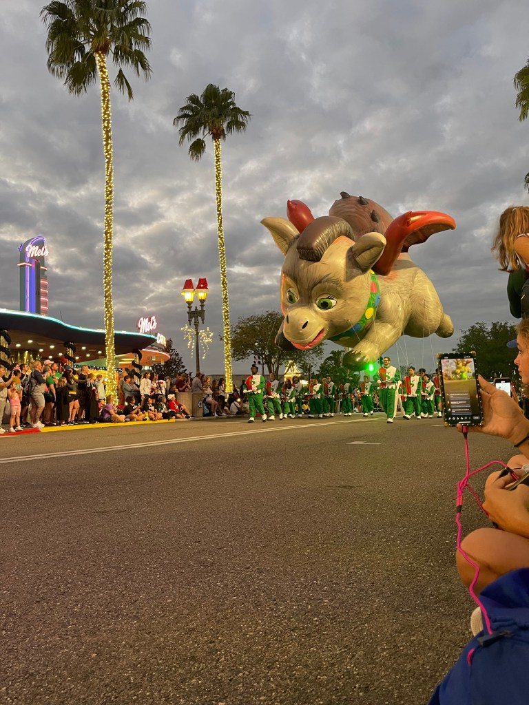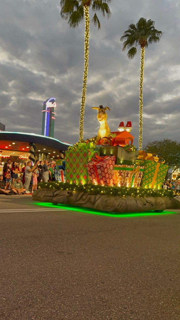 Então, eu fiquei para assistir a Universal’s Parade Holiday Featuring Macy’s, que acontece por volta das 17:30 nessa época do ano e passa bem em frente ao restaurante.