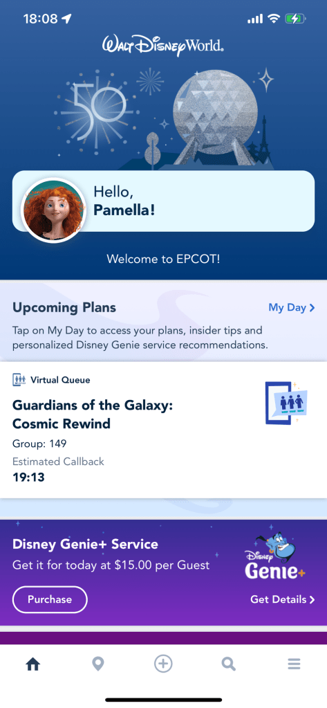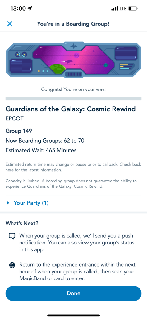 Não esqueça de ficar atualizando o app da Disney para conseguir se inscrever na fila virtual, porque mesmo eu entrando exatamente as 13:00, só consegui ir no brinquedo as 19:00.