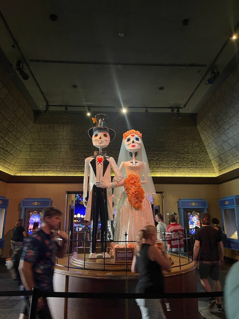 Tive que entrar na pirâmide para conferir como era lá dentro. O local é climatizado, uma decoração belíssima, com várias lojinhas que vendem produtos relacionados ao país e você ainda tem a possibilidade de tirar uma foto com o Zé Carioca, mas infelizmente eu não tive essa sorte. Aproveitei e comprei uma caveirinha, símbolo do México, que me esqueci de comprar quando estive em Cancun. É lindinha demais!