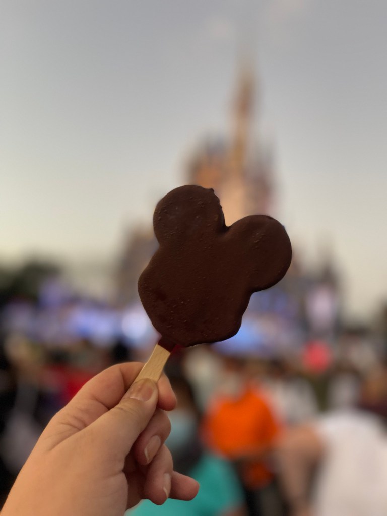 Então retornei para assistir um show do Celebration com os personagens em frente ao Castelo, mas antes comprei esse picolé do Mickey que todo mundo quer comprar para experimentar. Achei bem sem graça, os nossos no Brasil são bem melhores! haha