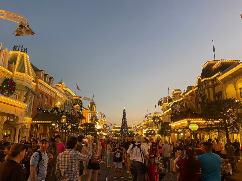 O famoso show de fogos de artifício no Castelo da Cinderela acontece as 20:15 nesse período do ano e ainda ia demorar um pouco para começar.