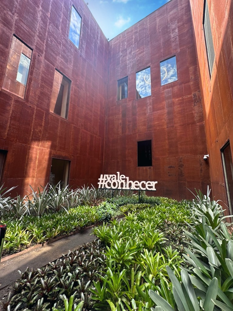 O museu também é um espaço de convivência, com áreas como café, jardim, sala Ler + Ver, midiateca e auditório para cursos, seminários e apresentações.