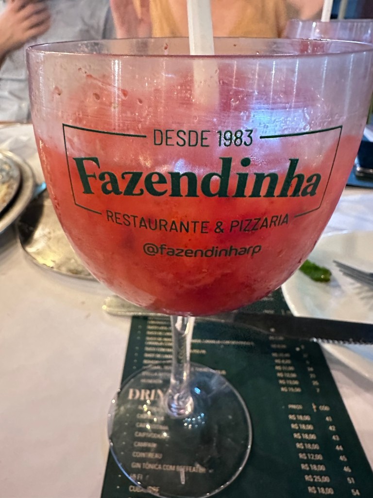 Conheci a FAZENDINHA RESTAURANTE E PIZZARIA, que tem unidades em Jaraguá e Santa Amélia (a que visitei). Destaco a pizza de frango com catupiry (de verdade mesmo, da marca Catupiry – isso ganha meu ♥) e a caipivodka de morango (a melhor que já tomei na vida). A Fazendinha é da família da Marina, uma amiga que conheci na Chapada dos Veadeiros, através da Pri.