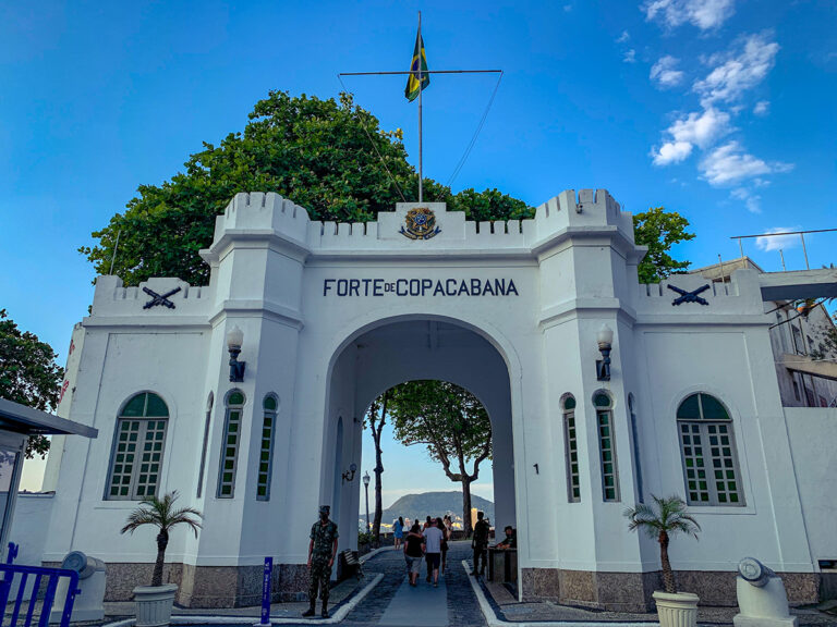 Cheguei ao Forte de Copacabana por volta das 13:30 e o ingresso poderia ser adquirido na bilheteria que está do lado de fora do Forte, mas a próxima sessão era apenas as 14:40. Comprei o ingresso por R$90 (exposição + entrada do Forte) no cartão de crédito e fui almoçar.